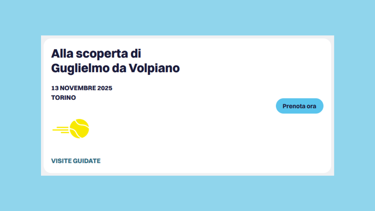 Siamo felici di annunciarvi che, in occasione degli ATP finals di Tennis a Torino, tra le varie proposte di visite ed escursioni, è stata inserita la visita guidata Alla scoperta di Guglielmo da Volpiano. A Volpiano sarà possibile esplorare il centro storico sulle tracce di Guglielmo da Volpiano, monaco benedettino, riformatore religioso, architetto e musicologo. Dopo il pranzo in trattoria tipica, il percorso prosegue a San Benigno, per ammirare l’imponente Abbazia di Fruttuaria, fondata da Guglielmo nel 1003, simbolo di storia, arte e spiritualità.