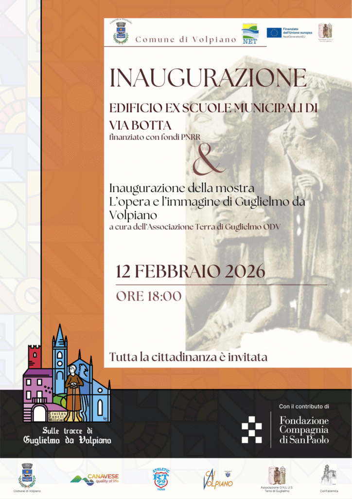 In occasione dell’apertura, sarà inaugurata la mostra “L’opera e l’immagine di Guglielmo da Volpiano”, a cura dell’Associazione Terra di Guglielmo ODV, un percorso espositivo che valorizza la figura storica di Guglielmo da Volpiano e il legame con il territorio.